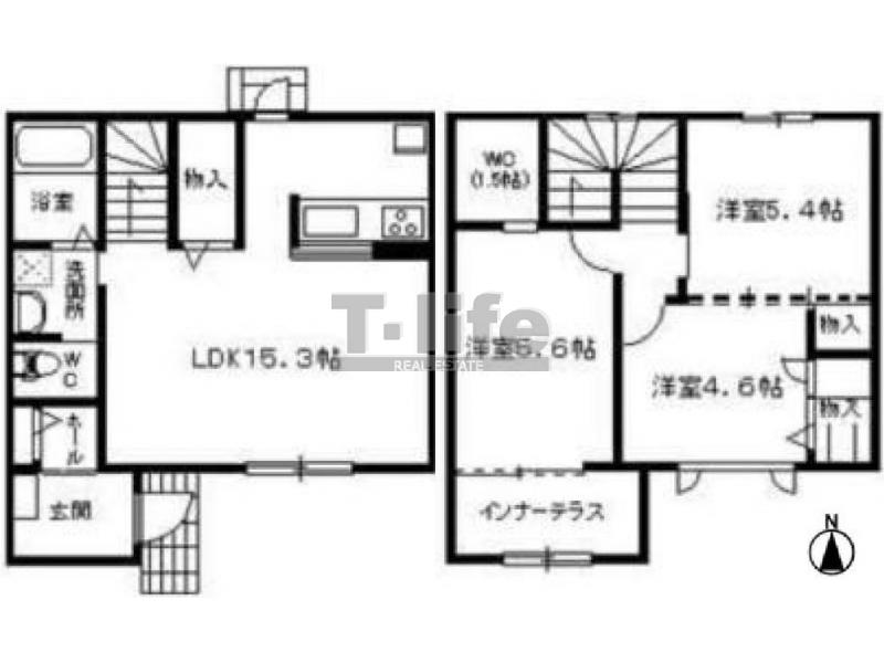 | 間取詳細 | 1F:LDK15.3 2F:5.6洋、5.4洋、4.6洋 | ||