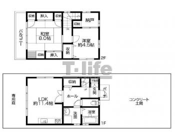 | 間取詳細 | 1F:LDK11.4 2F:8和、4.5洋、納戸 | ||